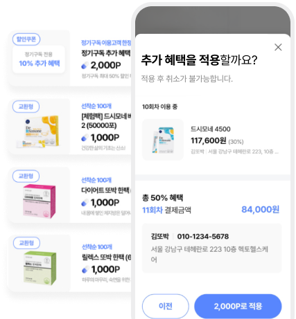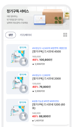 드시모네 자사몰 회원만을 위한 정기 결제+자동 배송 서비스예요.