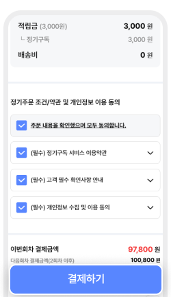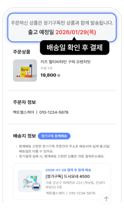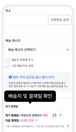 2회차부터는 지정했던 정기 결제일 오전에 자동 결제된 후, 당일 발송이 시작되어요.