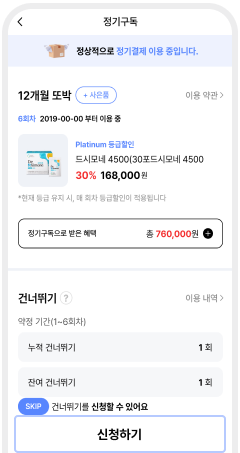 섭취할 양이 아직 꽤 남아있을 경우, 정기구독 혜택은 유지한 채 잠시 쉬어갈 수 있어요.