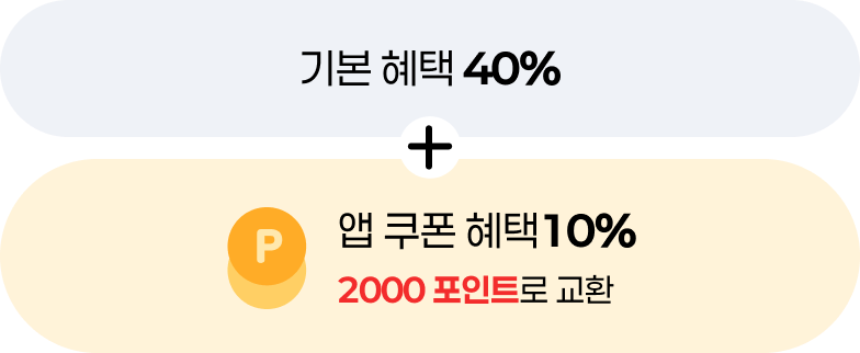 정기구독 매월 40% 혜택에 앱 쿠폰 혜택 10%를 더하면