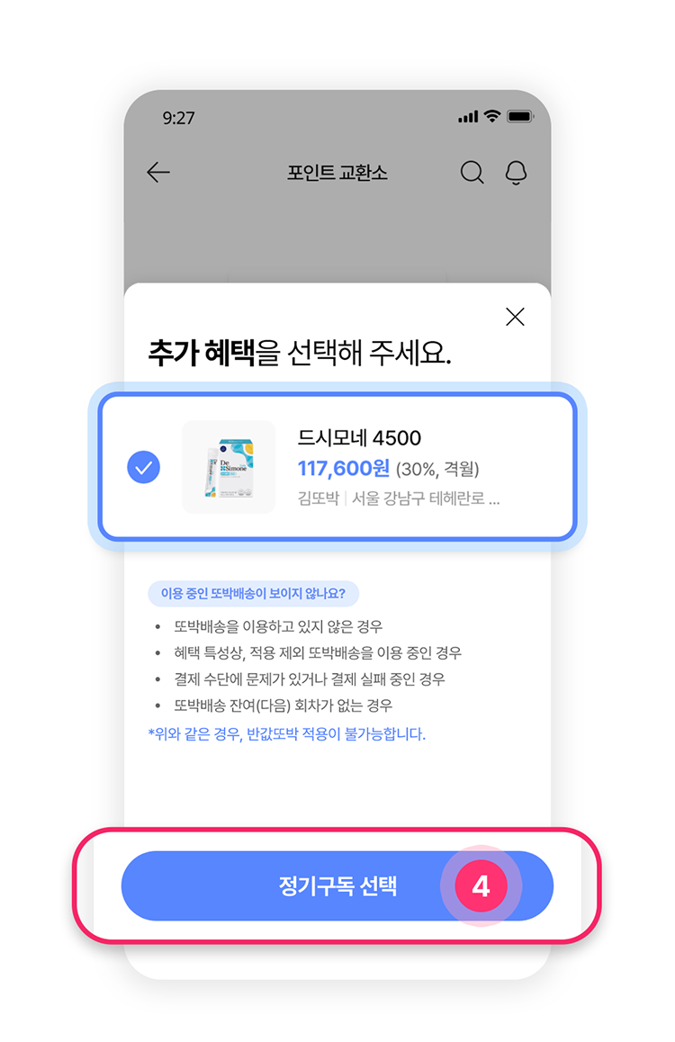 ‘정기구독 추가혜택 쿠폰’을 선택하세요.